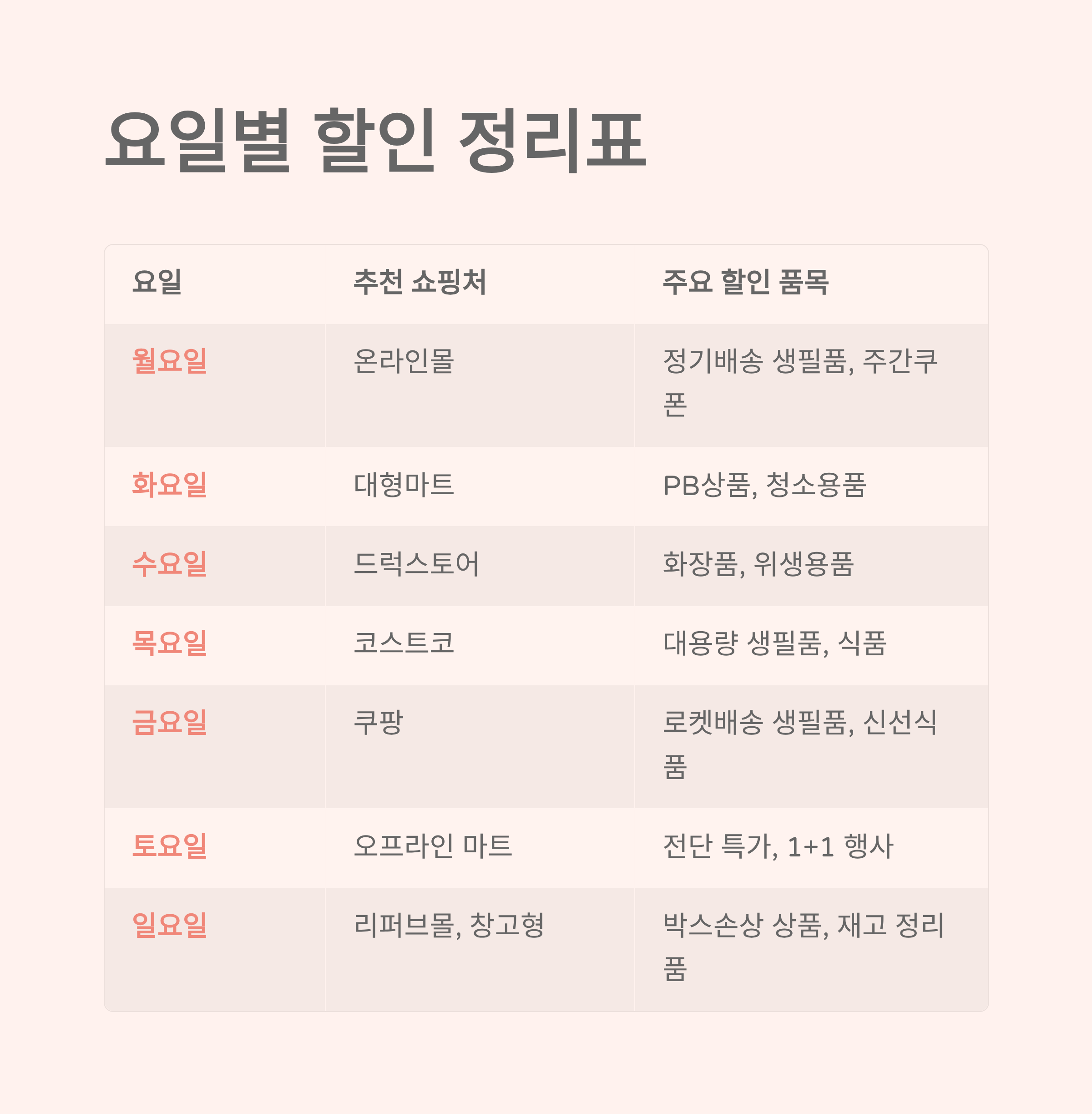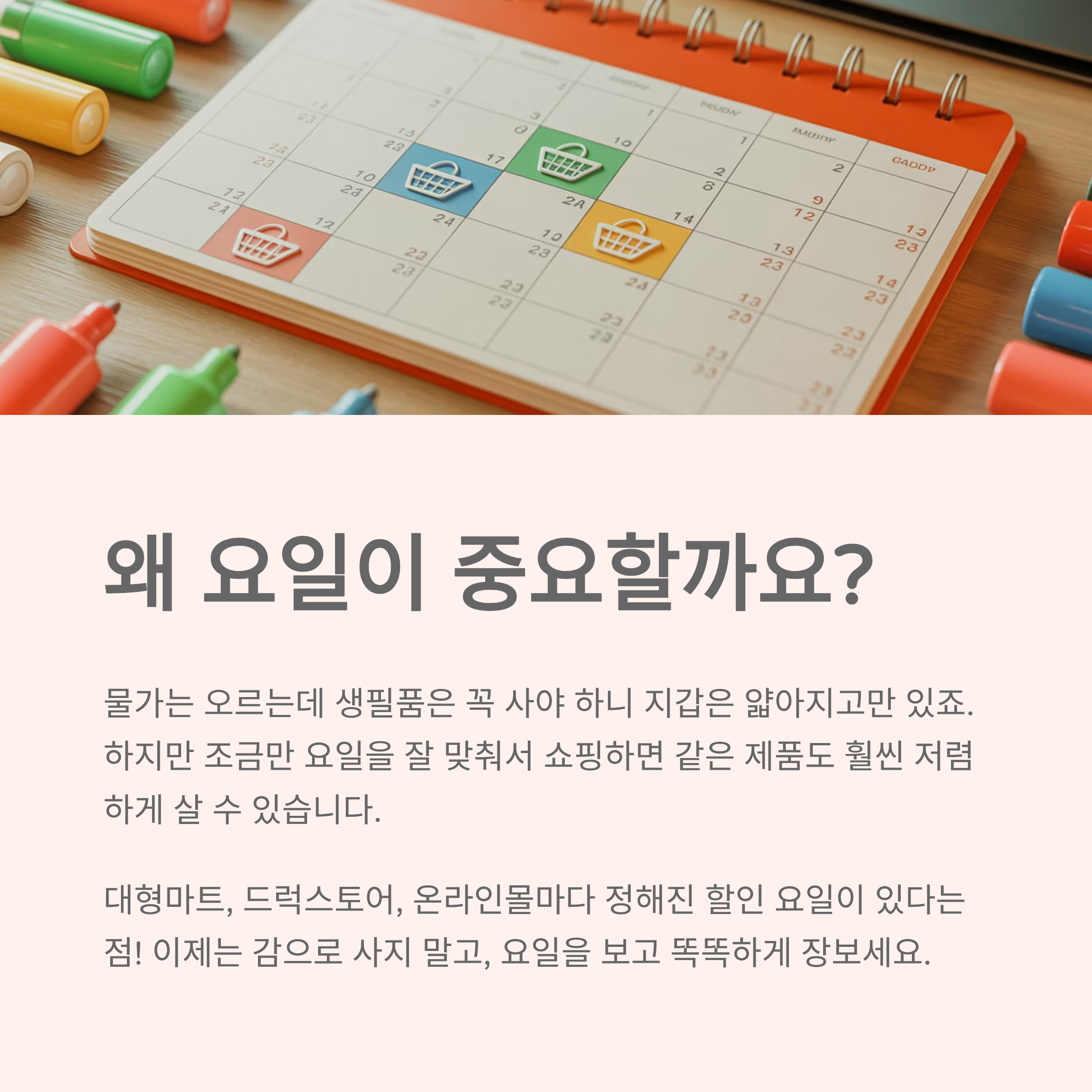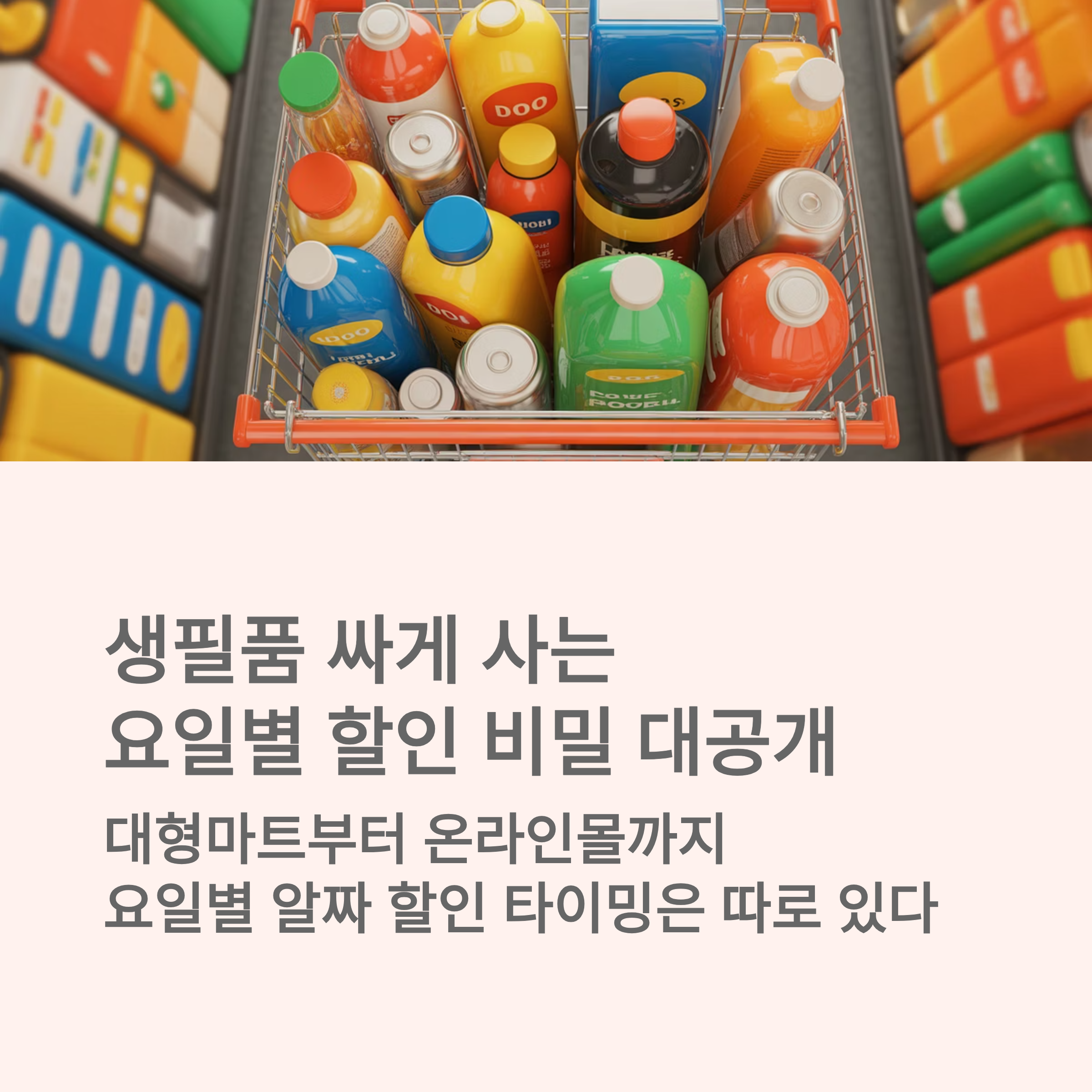 이번 글에서는 생필품을 가장 알뜰하게 살 수 있는 요일별 할인 전략을 정리해드릴게요.